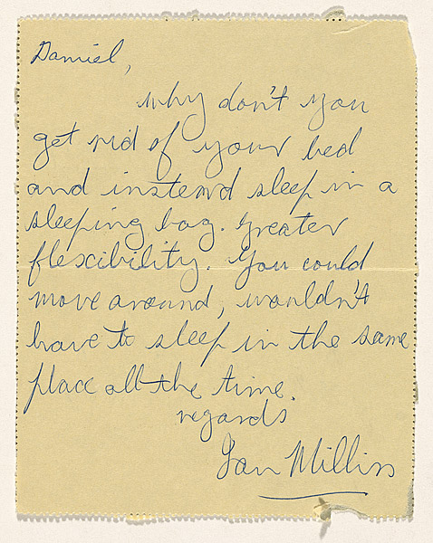 We are specifically interested in exhibiting Life in One Room 1971 as well as any documents relate to your involvement in The Art Workers Union.”